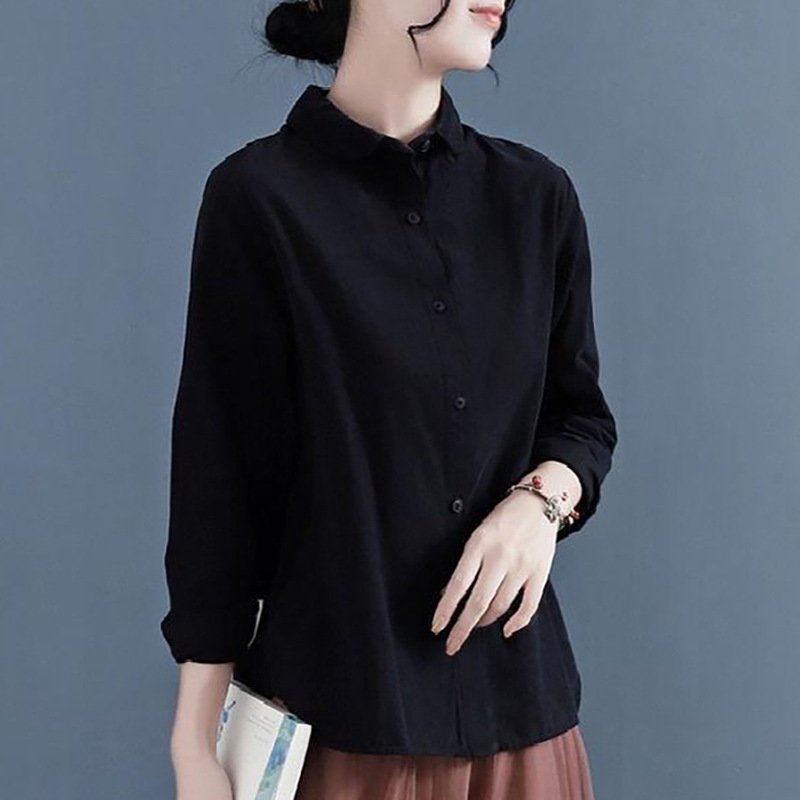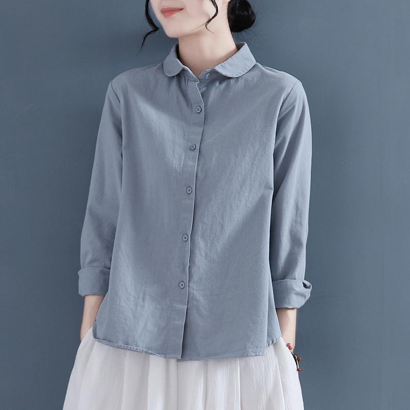 大人可愛い綿麻ラウンドカラーシャツ長袖